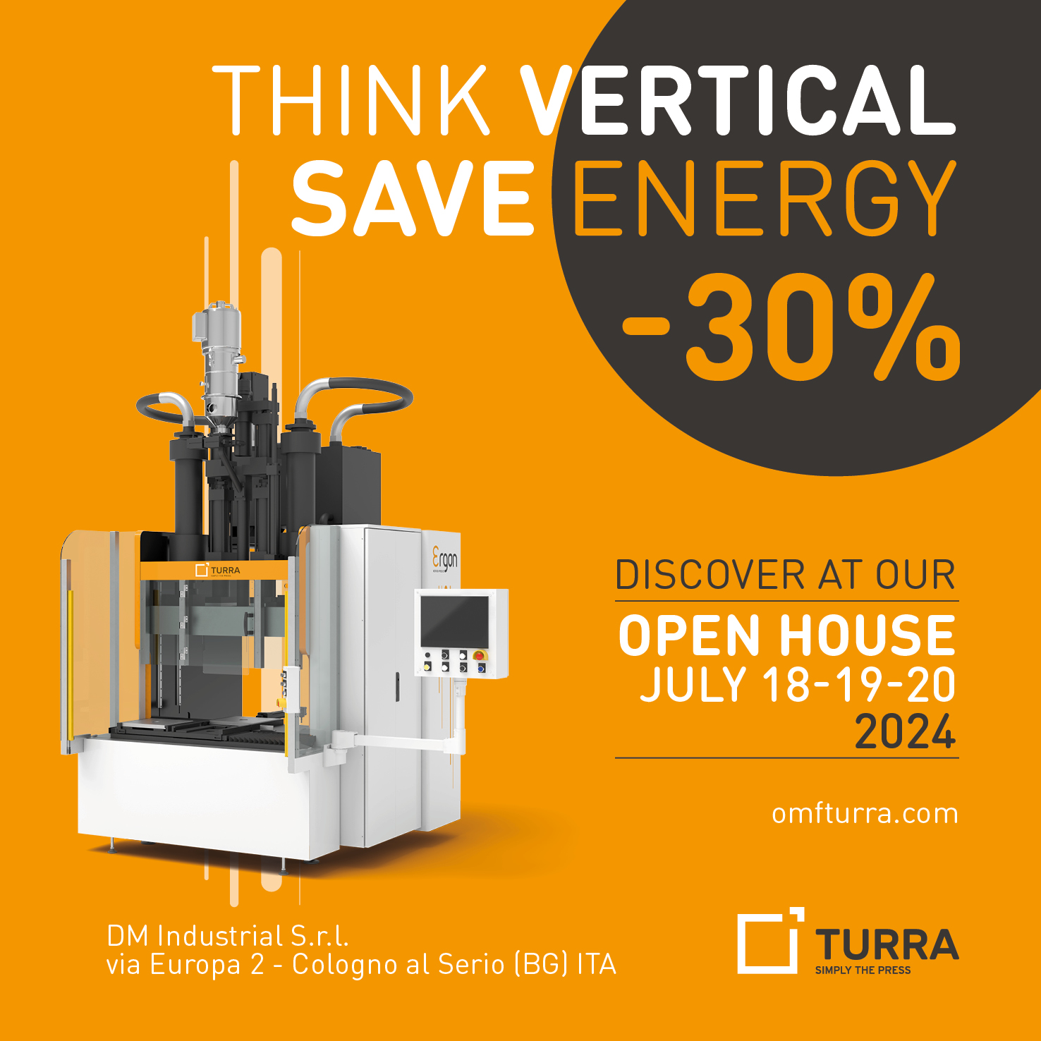 Dal 18 al 20 Luglio DM Industrial TURRA aprirà le porte della sua sede. Sarà possibile toccare con mano la tecnologia TURRA sinonimo di qualità innovazione e risparmio energetico